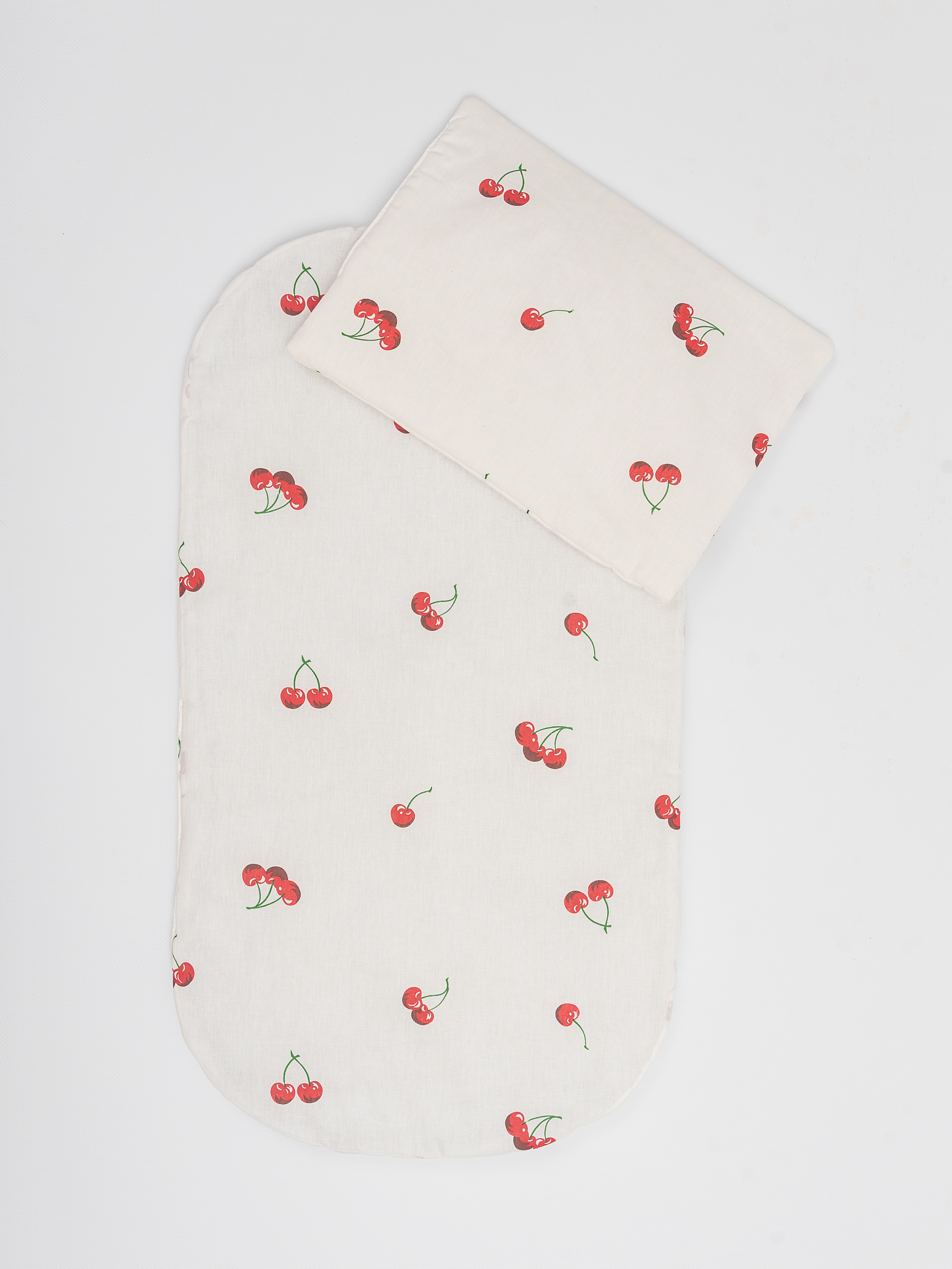 Комплект в коляску произведен в России и выполнен из высококачественных материалов российских производителей. Внешний слой матраса и подушки выполнен из 100% хлопка, наполнитель – синтепон 200 гр. Все материалы гипоаллергенны.